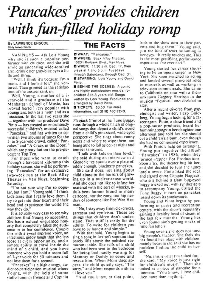 ‘Pancakes’ provides children with fun-filled holiday rompby Lawrence Enscoe, Los Angeles Daily News.